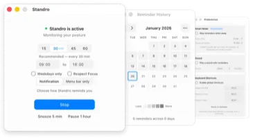 A quiet menu bar app that reminds you to stand up and take healthy breaks throughout your workday.